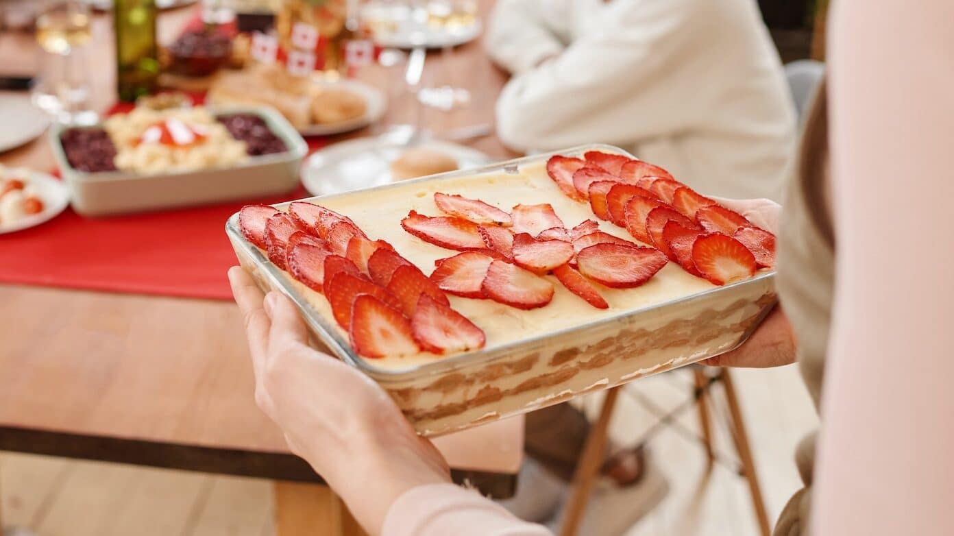 Tiramisù alle fragole fresche e il succo al posto del caffè